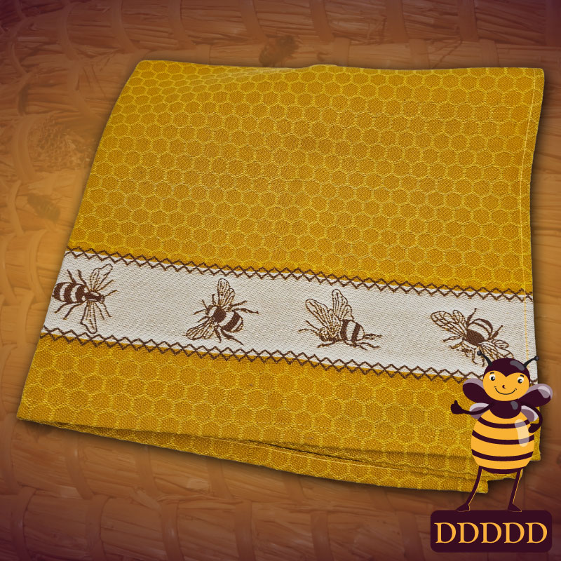 Theedoek met raat- en bijenmotief DDDDD | Geel